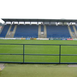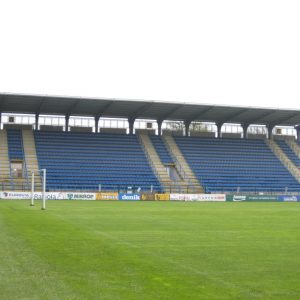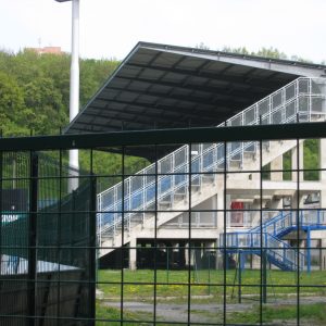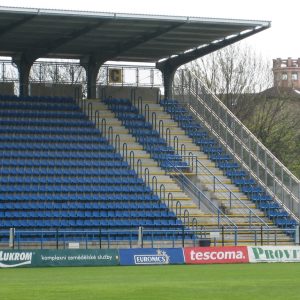 Rekonstrukce a dostavba fotbalového stadionu včetně výstavby nové kryté tribuny železobetonové konstrukce s nosnou ocelovou rámovou konstrukcí zastřešení.