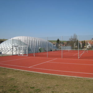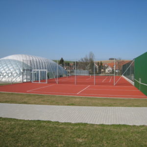 Novostavba sportovního komplexu tenisových kurtů, přetlakové haly a klubového objektu se zázemím včetně venkovní terasy, komunikací a zpevněných ploch.